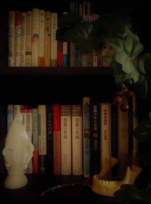 好きな本:長野まゆみ『テレヴィジョン・シティ』/恩田陸『麦の海に沈む果実』/宮沢賢治『春と修羅』/天沢退二郎『光車よ、まわれ!』/倉数茂『黒揚羽の夏』/小森香折『二コルの塔』/高楼方子『十一月の扉』/梨木香歩『家守綺譚』/有栖川有栖『絶叫城殺人事件』/笠井潔『バイバイ、エンジェル』/髙村薫『レディ・ジョーカー』/五條瑛『スリー・アゲーツ』/吉田直『トリニティ・ブラッド』シリーズ/プロイスラー『クラバート』/柳田国男『海南小記』/坪井洋文『イモと日本人』/佐々木中『切りとれ、あの祈る手を』/浅田彰『ヘルメスの音楽』/大江健三郎『キルプの軍団』/四方田犬彦『月島物語』/見田宗介『まなざしの地獄』/鶴見俊輔『身ぶりとしての抵抗』/ソロー『ウォールデン 森の生活』……