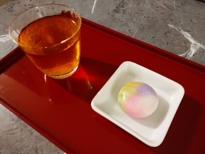 しとしと降る雨の中、かわいいおみやげを買って帰路につきました。刺繍の毬をモチーフにした、“御菓子処 白秋庵”の「柳川まり」です。見た目だけでなく、食べると、ふっと香るつくね芋が優雅さを感じさせます。城下町のゆったりとした時の流れを感じながら……