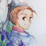 今回初めて、コットマンの中目水彩紙を使いました。いつも使っているマルマンのドローイングブロックよりも乾き方が早くて、ぼかしが追い付かない!それで吉祥顔彩を途中でドクターマーチンカラーインクに切り替えました。カラーインクとの相性は良いです。にじみすぎず。