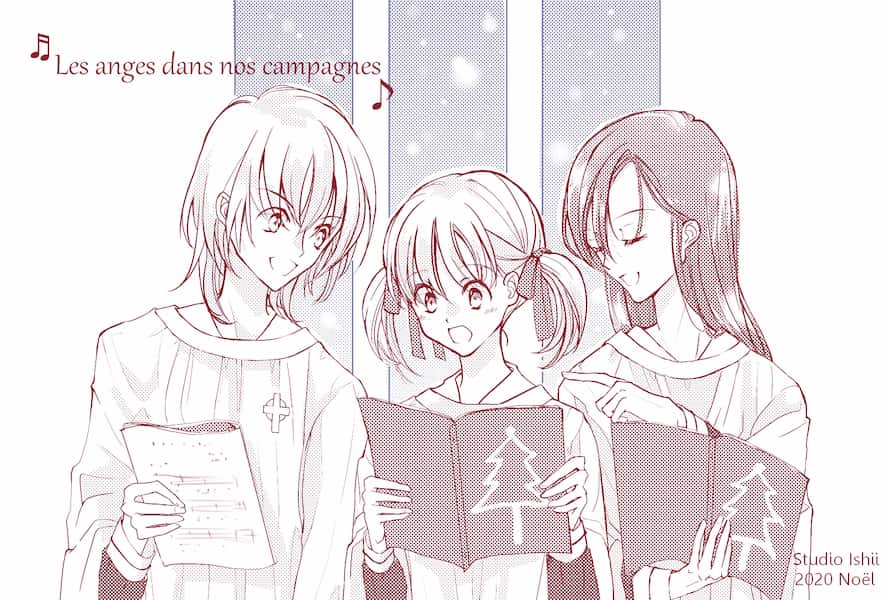 今年2020年のクリスマスカードは『マリア様がみてる』(今野緒雪)にしてみました。聖歌隊です。左から聖さま、祐巳ちゃん、祥子さま。