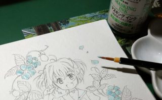 児童書でときどき見かける、本文を押しのけて入る不定形の挿絵ふうです。あれ、好きなのです。 イラストの端の部分は、データ化した画像を処理したのではなく、実際に紙の上でマスキングしています。3Mのマスキングテープ(黄色のテープ)と、ホルベインの...